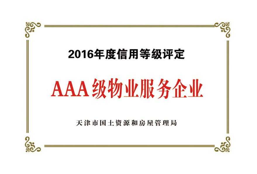 榮譽(yù)資質(zhì):天津市首批AAA級物業(yè)企業(yè)