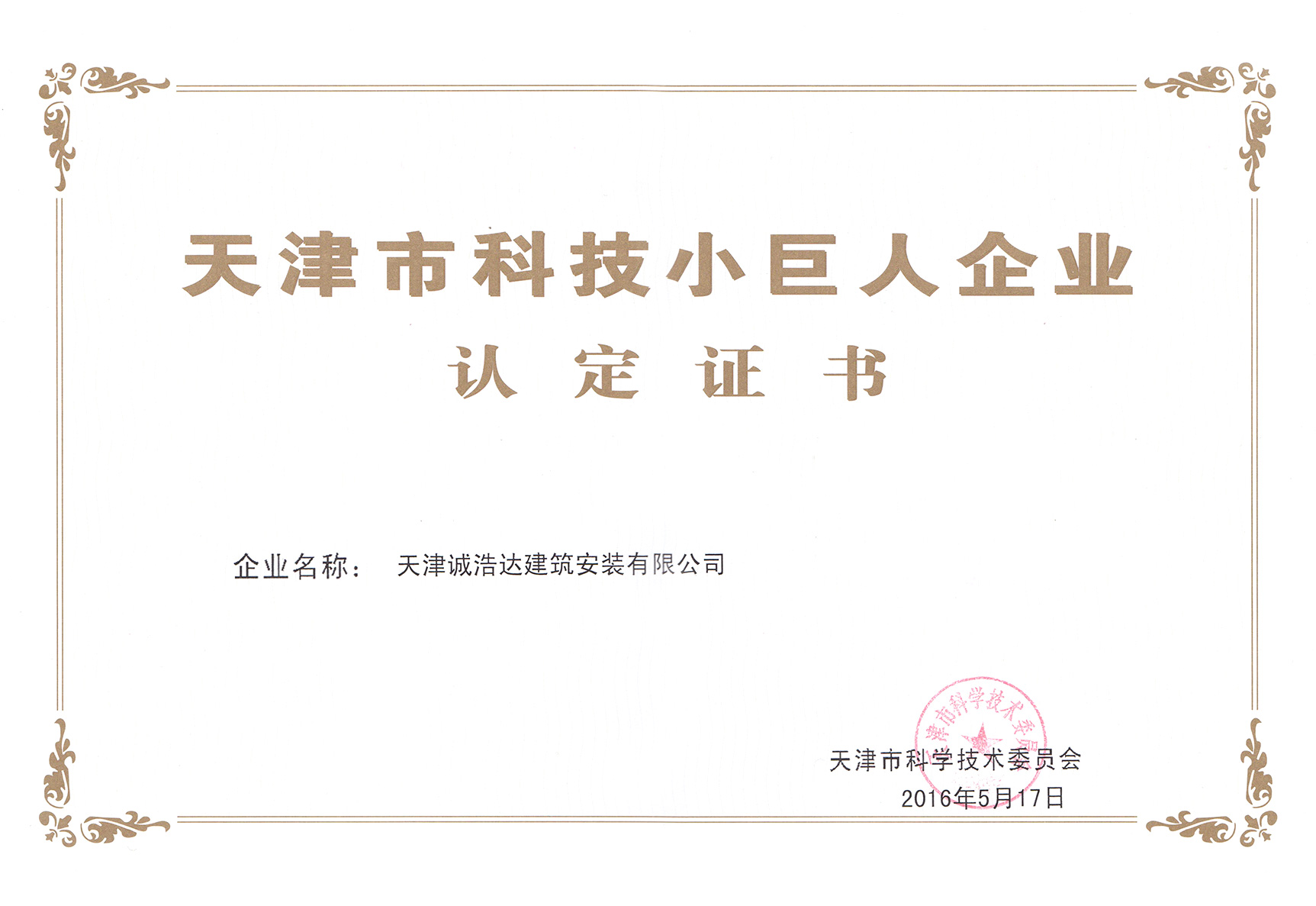 榮譽(yù)資質(zhì):天津市科技小巨人企業(yè)
